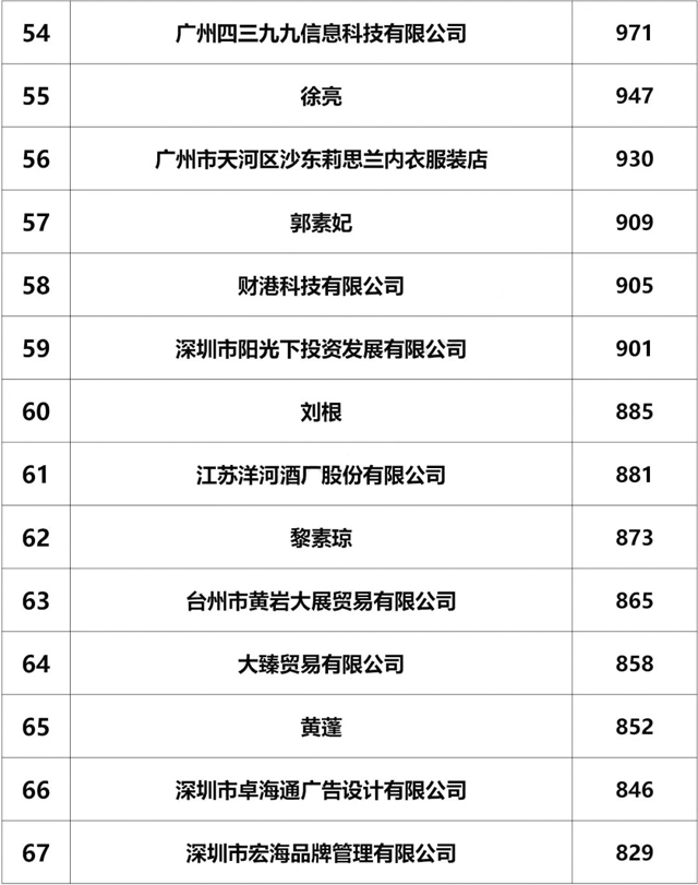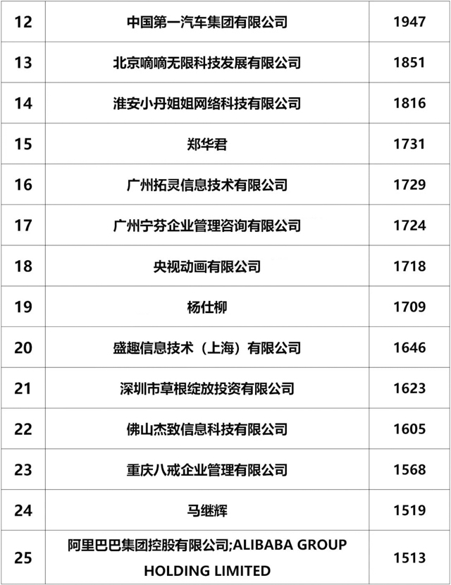 截止2018年6月30日,山東綠愛(ài)糖果股份有限公司,商標申請1289個(gè),,全國排名第35位,山東省排名第1位!
